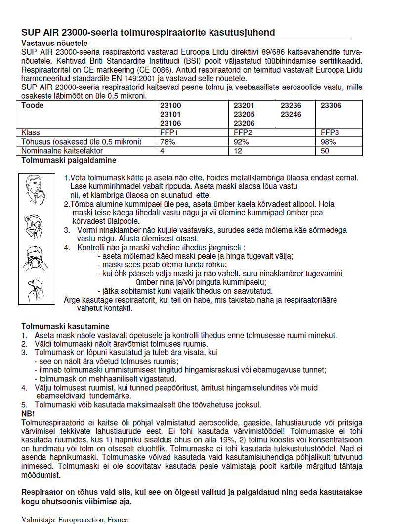 - Filtri materjal: elektrostaatiline polüpropeen;